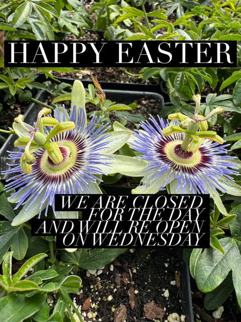 Happy Easter!We are closed this Sunday, the nursery will be open again on Wednesday.Rosemary Loveall-SaleApr 05, 2026102ShareWe will be at the Walnut Creek Farmers Market on Sunday, April 5th, from 9 am to 1 pm. Thanks for reading Morningsun Herb Farm! Subscribe for free to receive new posts and support my work.Subscribe